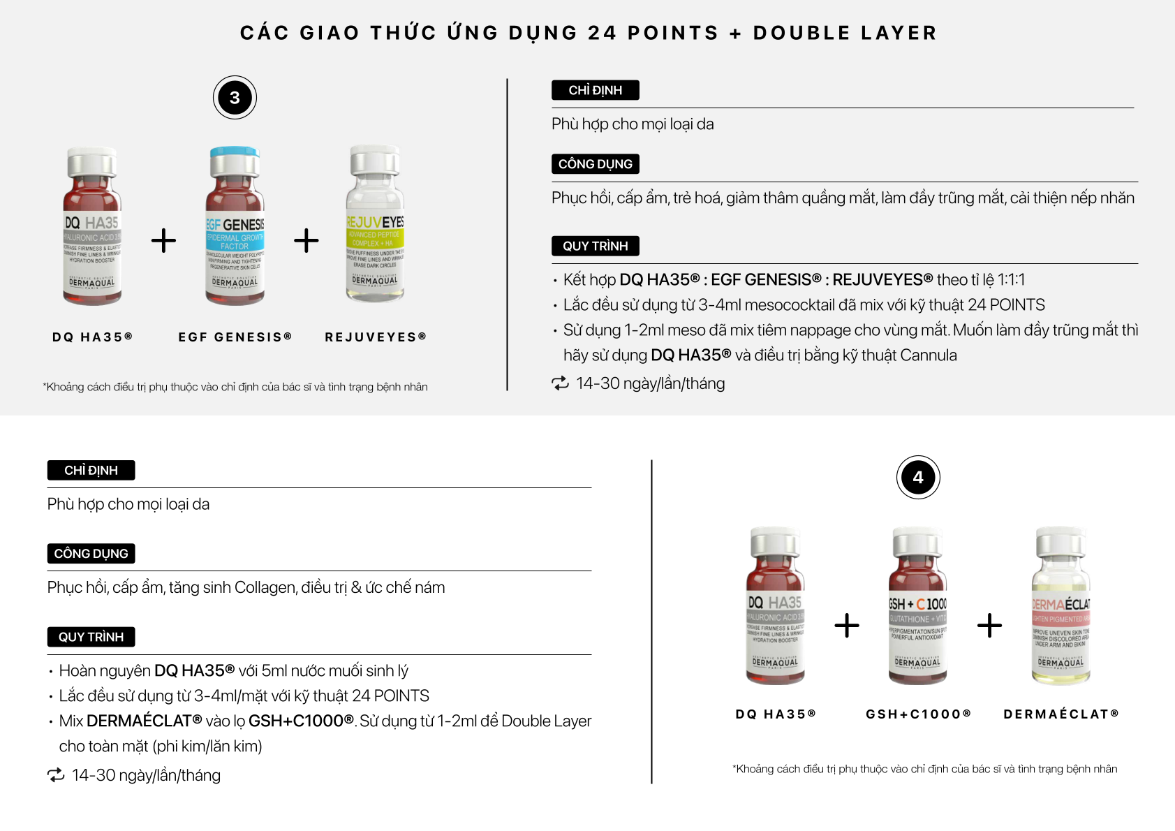 Tại Dermaqual, chúng tôi có một kỹ thuật nâng cơ & trẻ hóa 24 POINTS độc quyền, được ứng dụng trên 90 quốc gia, có thể ngăn chặn và giảm các dấu hiệu lão hóa tự nhiên. Sau điều trị, da bạn sẽ căng bóng ngay lập tức, khôi phục độ đầy đặn, đàn hồi cho da, giúp giảm nếp nhăn và thu nhỏ lỗ chân lông.